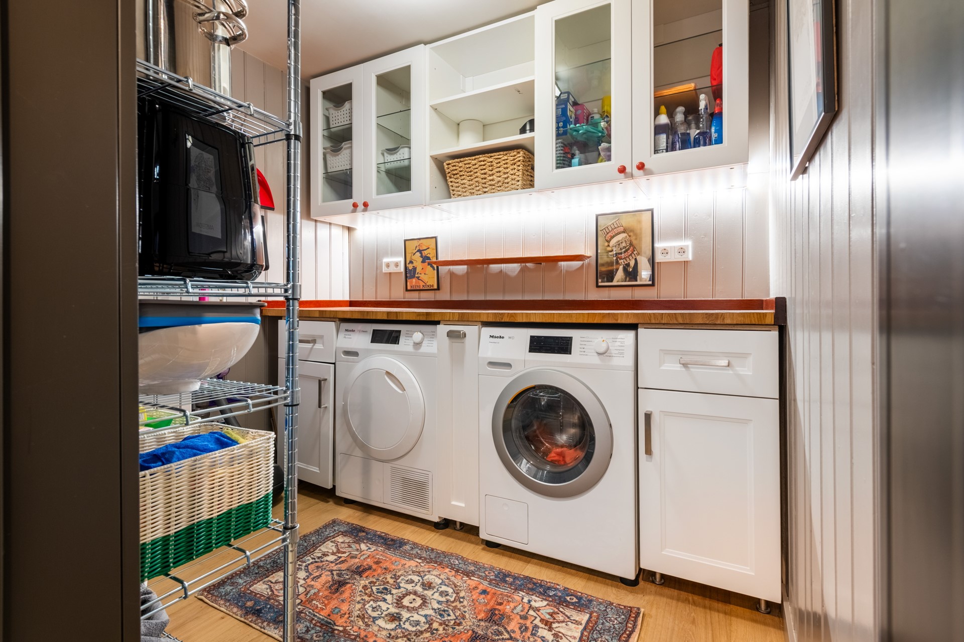 Enjoy 108m² (approx 1,200 sq feet) of beautifully curated space, featuring all new, high end appliances throughout, including a modern kitchen (w/ dishwasher) and dedicated laundry room with separate Miele washer and dryer. The living room is perfect for entertaining or unwinding, offering two separate media zones with TVs and surround sound, a contemporary bio-ethanol fireplace, and expansive windows overlooking a green belt and extraordinary garden. Originally an 1890’s carriage house, the home features historic large windows combined with a modern interior, accented by stunning mid-century Italian light fixtures and original art work, highlighting the apartment’s high eye for design and attention to detail.
