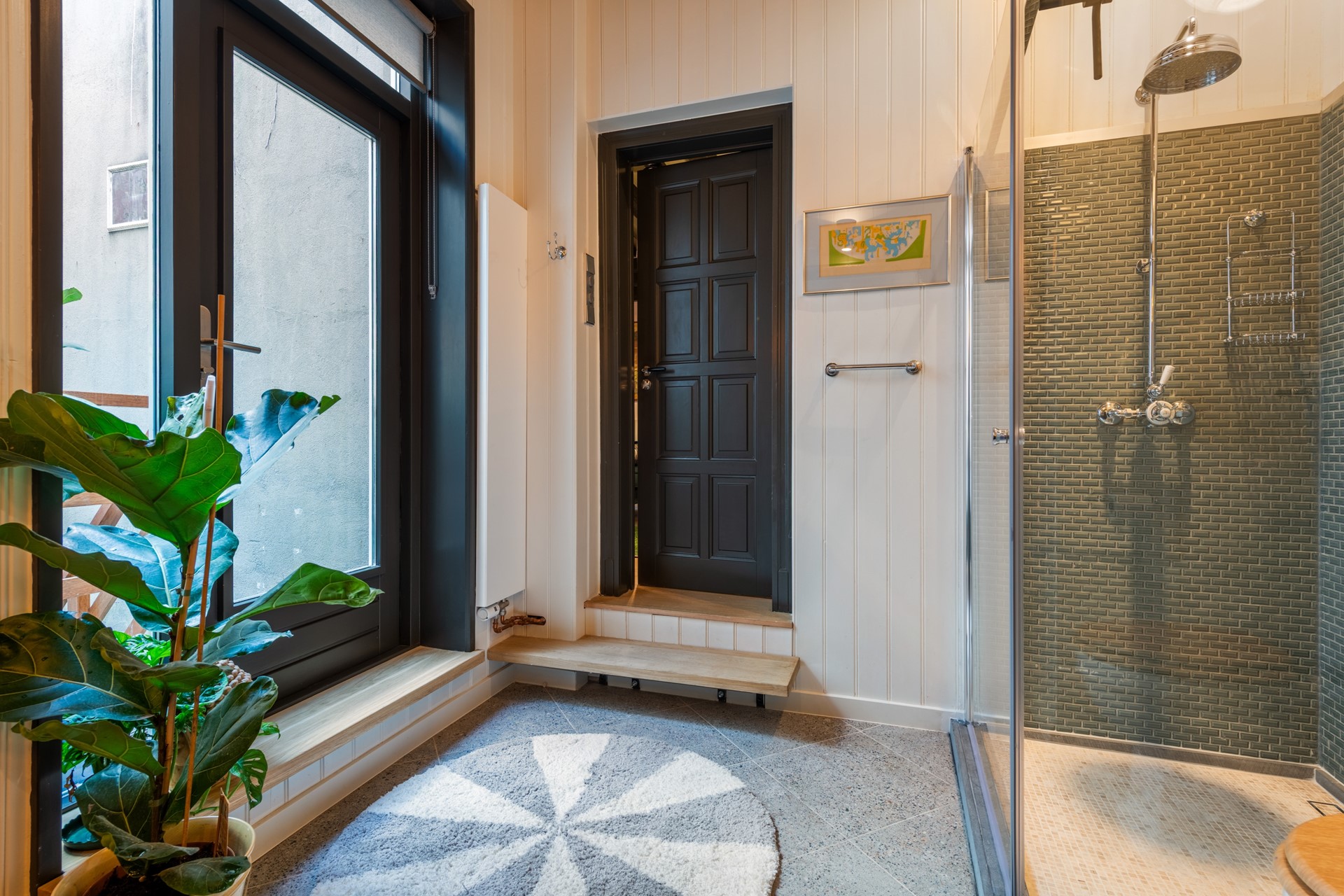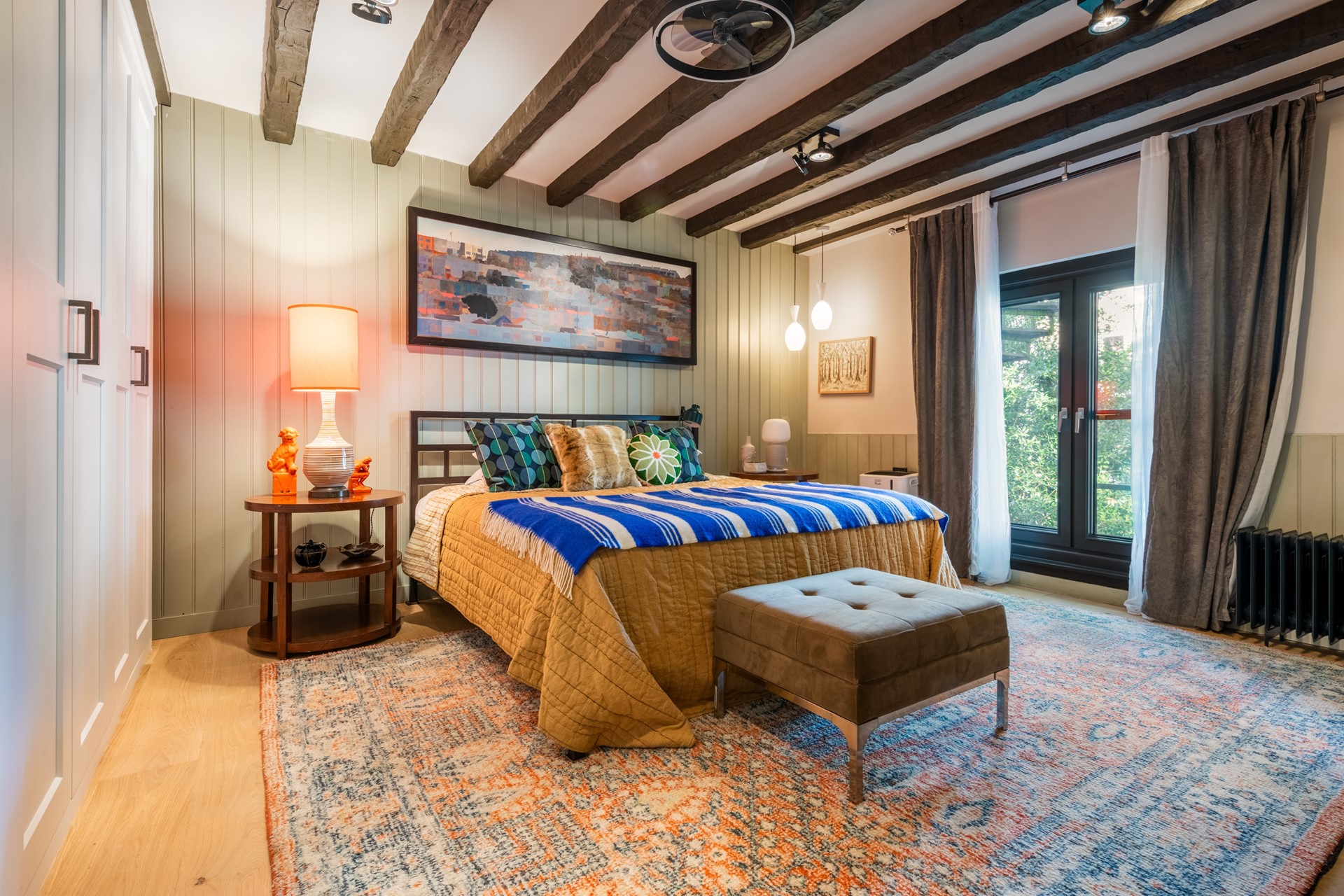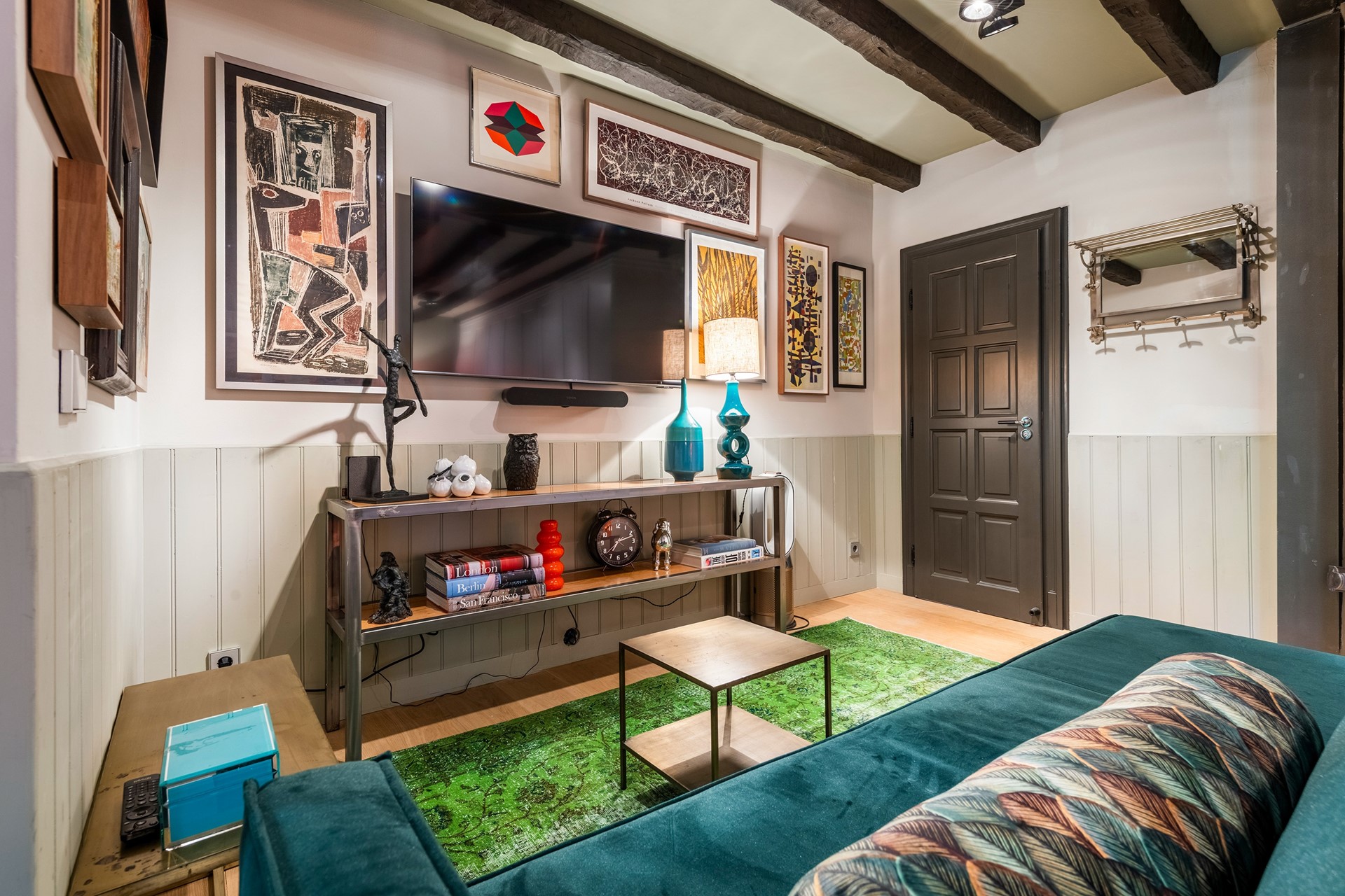 The extra large bedroom includes a luxurious American king-sized bed and very spacious en suite master bath. Authentic, solid oak floors run throughout, framed by swanky furnishings and original artwork. The bedroom includes a separate sitting area which could serve as a home office or cozy chill-out space. A patio adjoins the master bathroom providing sunlight and fresh air. Centrally located between the Keizersgracht and Prinsengracht, the apartment merges Amsterdam’s iconic historic ambiance with style and convenience.