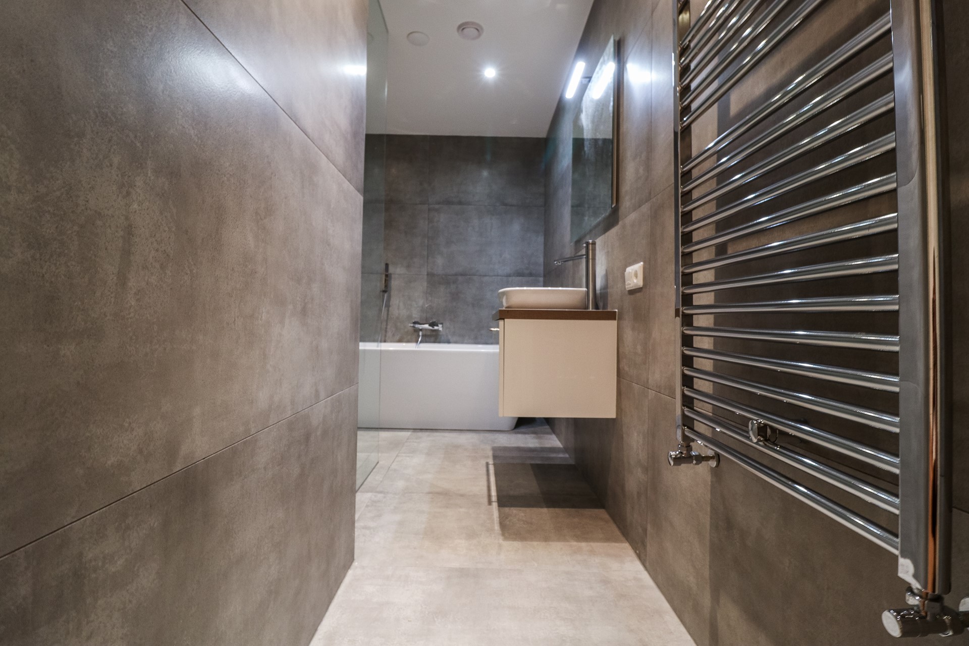 - Bathroom with bathtub, shower , sink and toilet (heated mirror)