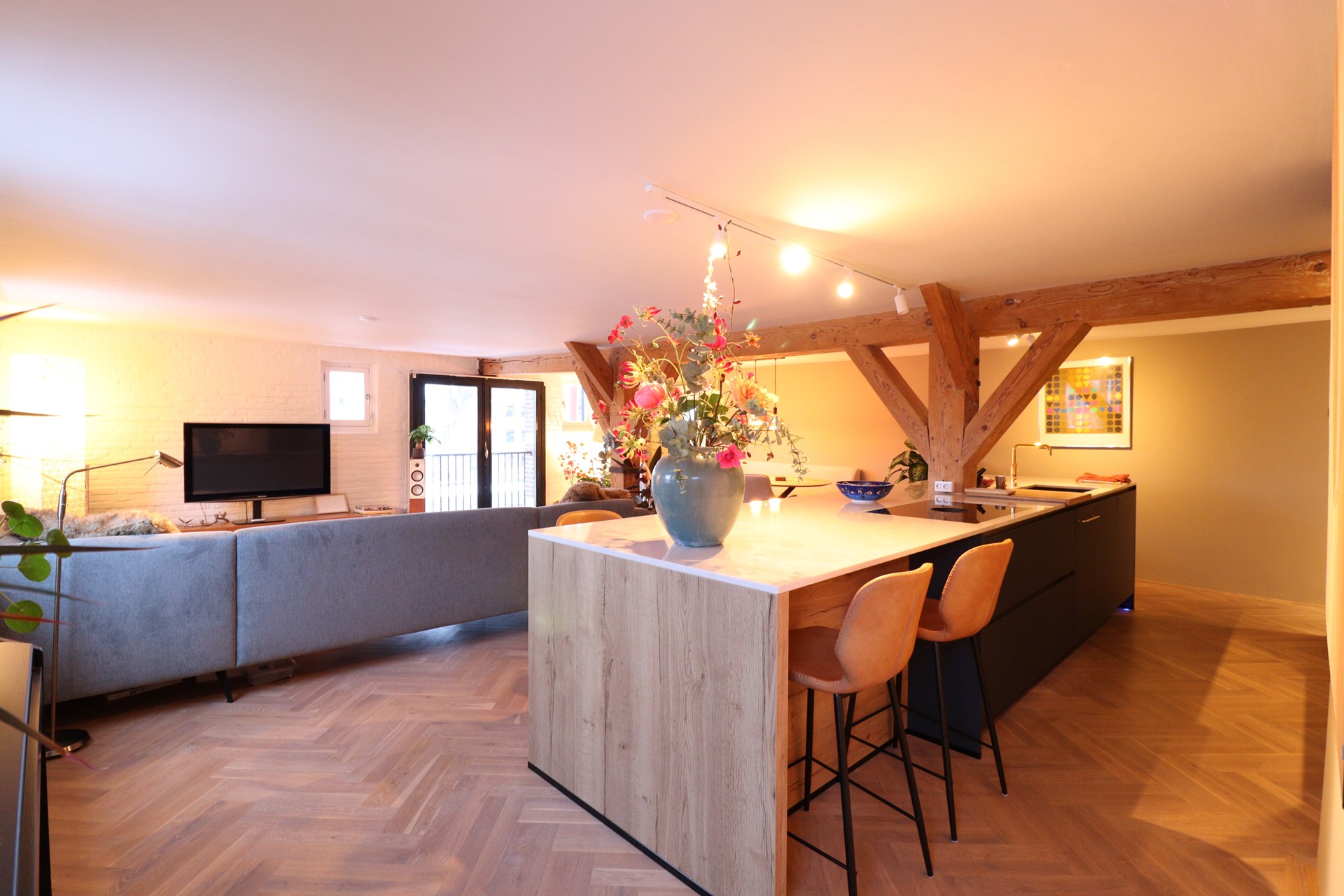 This amazing 112m² apartment with 2 bedrooms and 2 bathrooms and canal view is located on 'Prinseneiland' in Amsterdam. Central location but very quiet area and easy to reach by public transport. The apartment is fully furnished and has a fantastic huge kitchen with cooking island, 2 ovens and a lot of modernly built-in appliances. Perfect for a couple, young family or 2 friends for sharing.