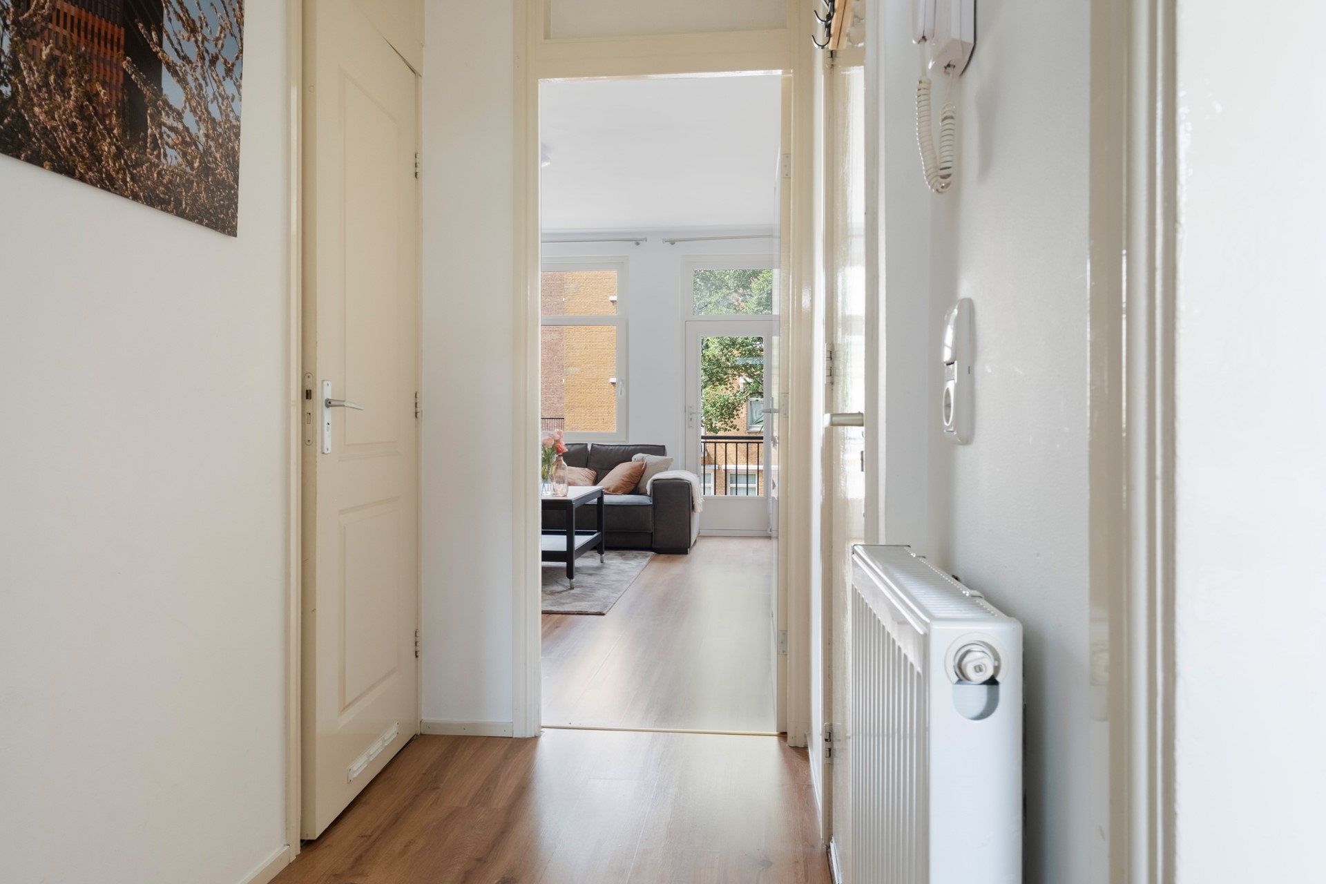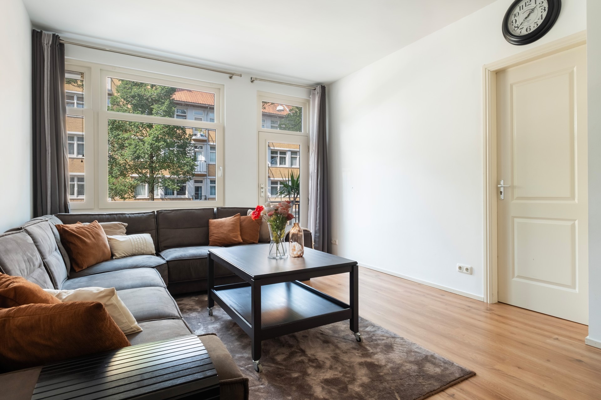 Bright three-room apartment of approximately 58 m² located on the first floor with both a balcony at the rear and a balcony at the front. The apartment is situated in the charming Hoofddorpplein neighborhood.