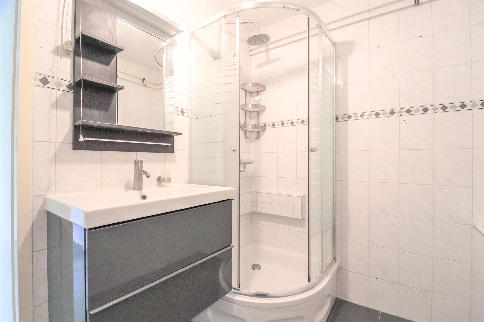 - Bathroom with shower and sink