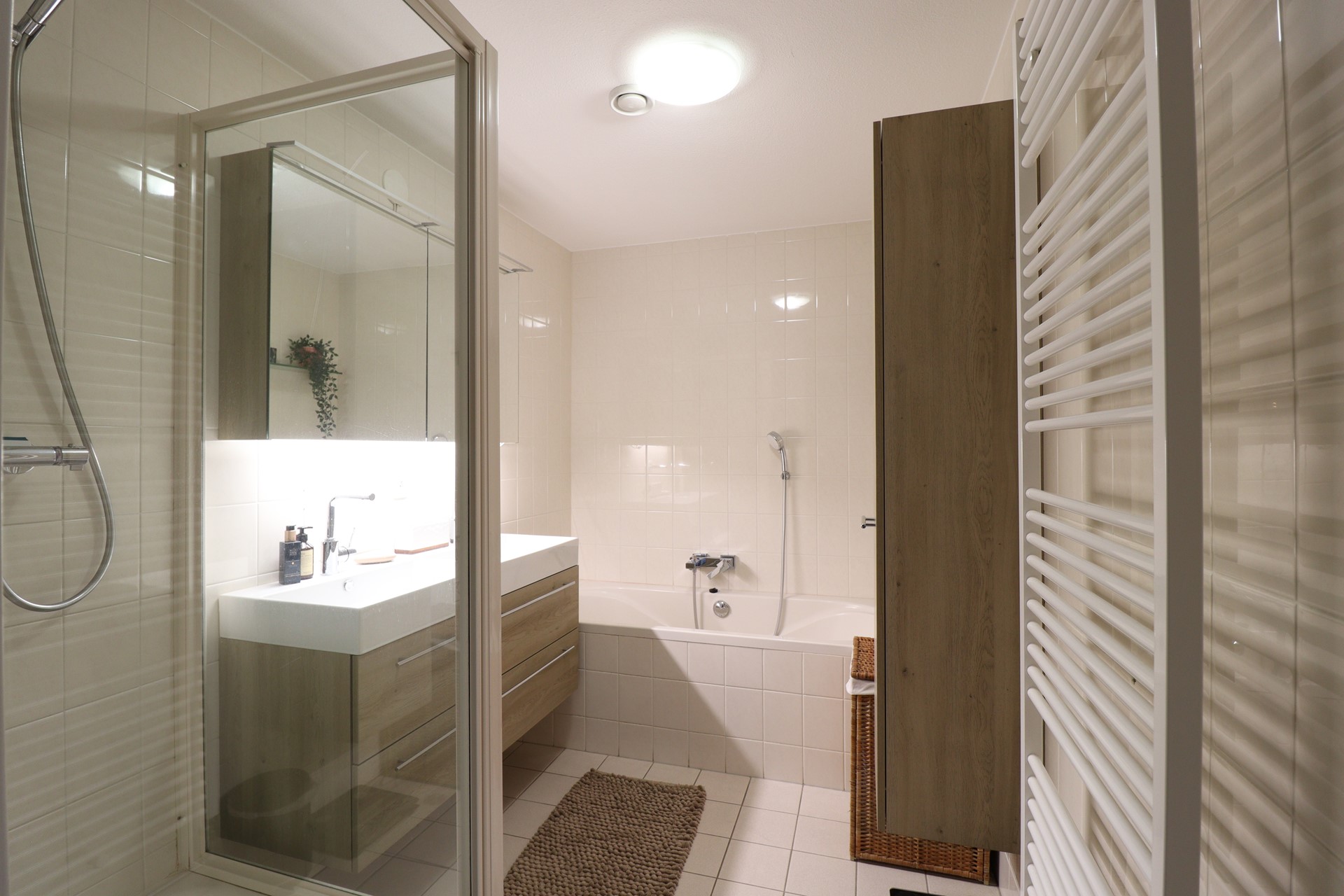 - Bathroom with bathtub, separate shower and double sink