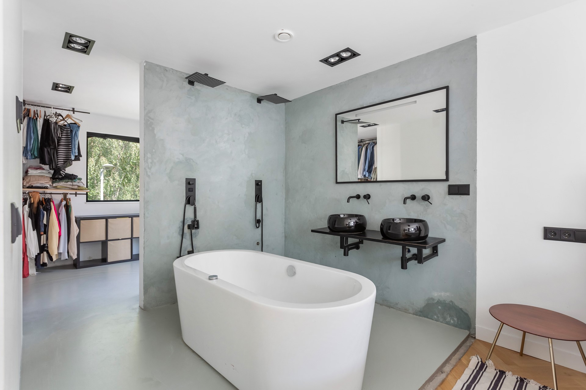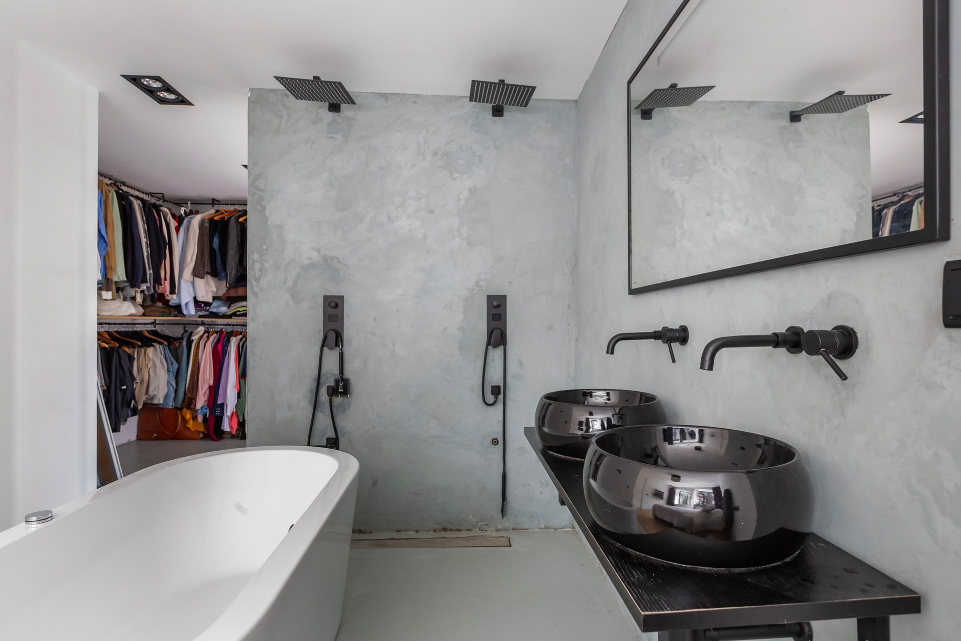 - Ruime open badkamer met open douche, ligbad, dubbele wastafel ensuite (masterbedroom)