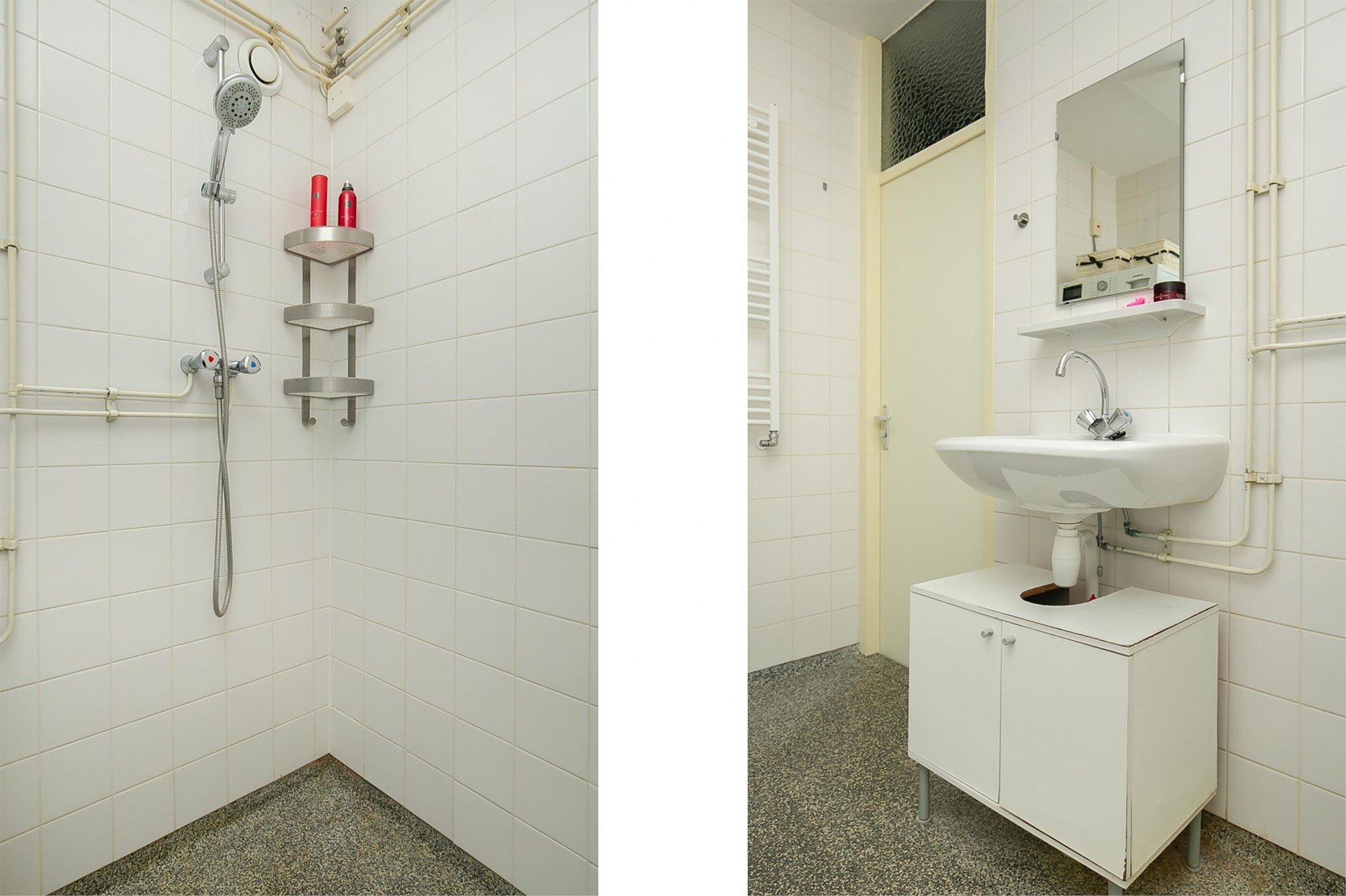 - Bathroom with shower, double sink