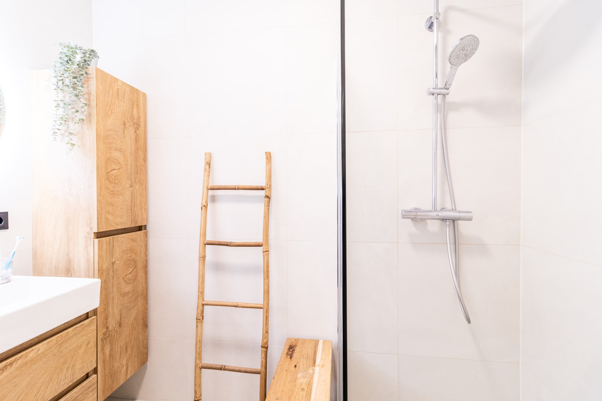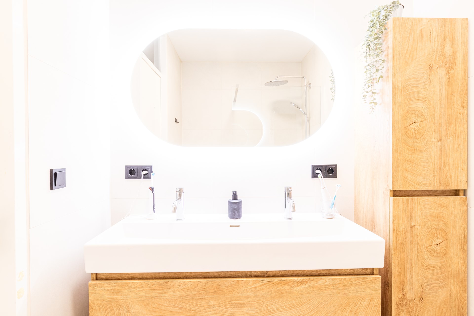 - Bathroom with shower and double sink