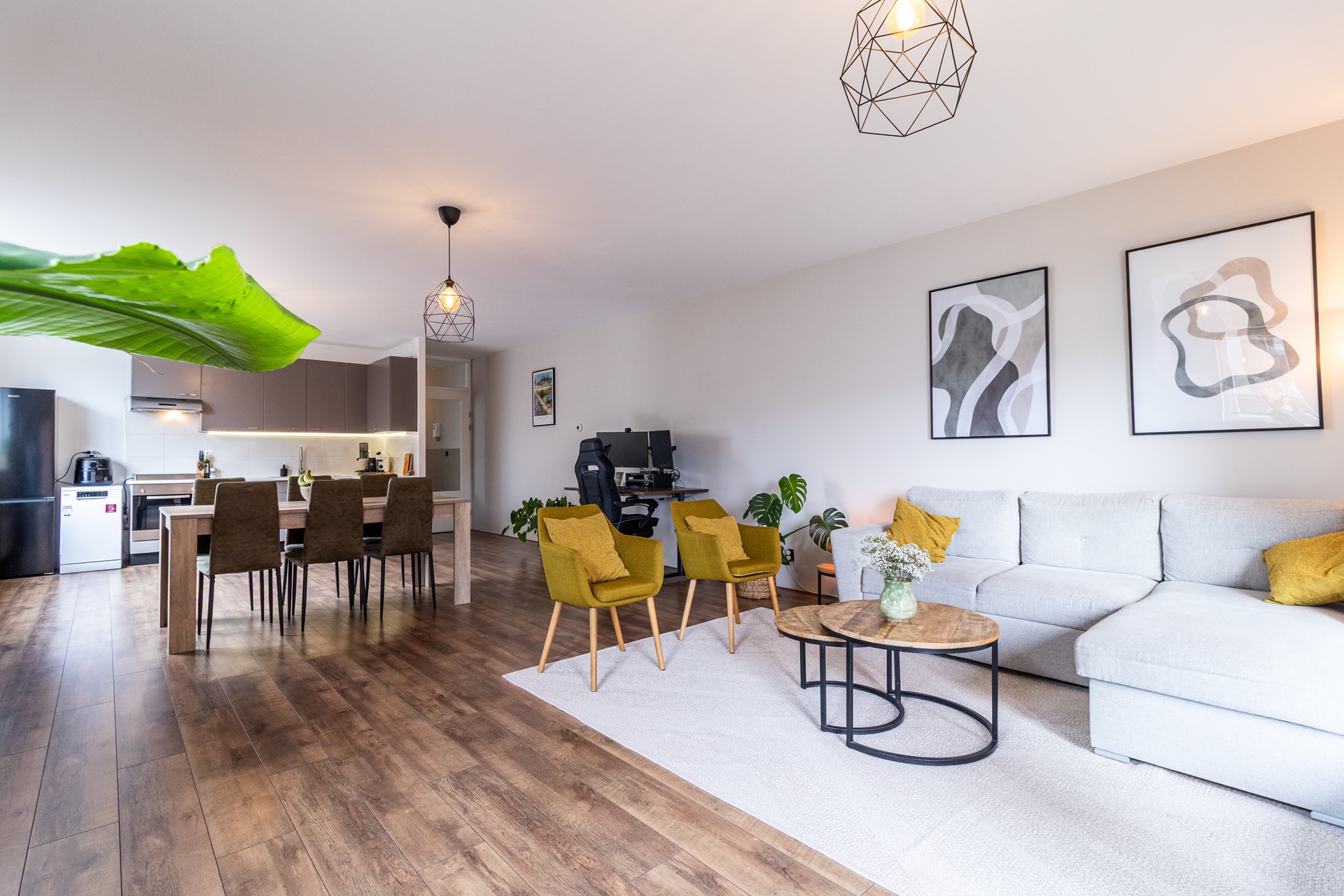 - Fully equipped open kitchen