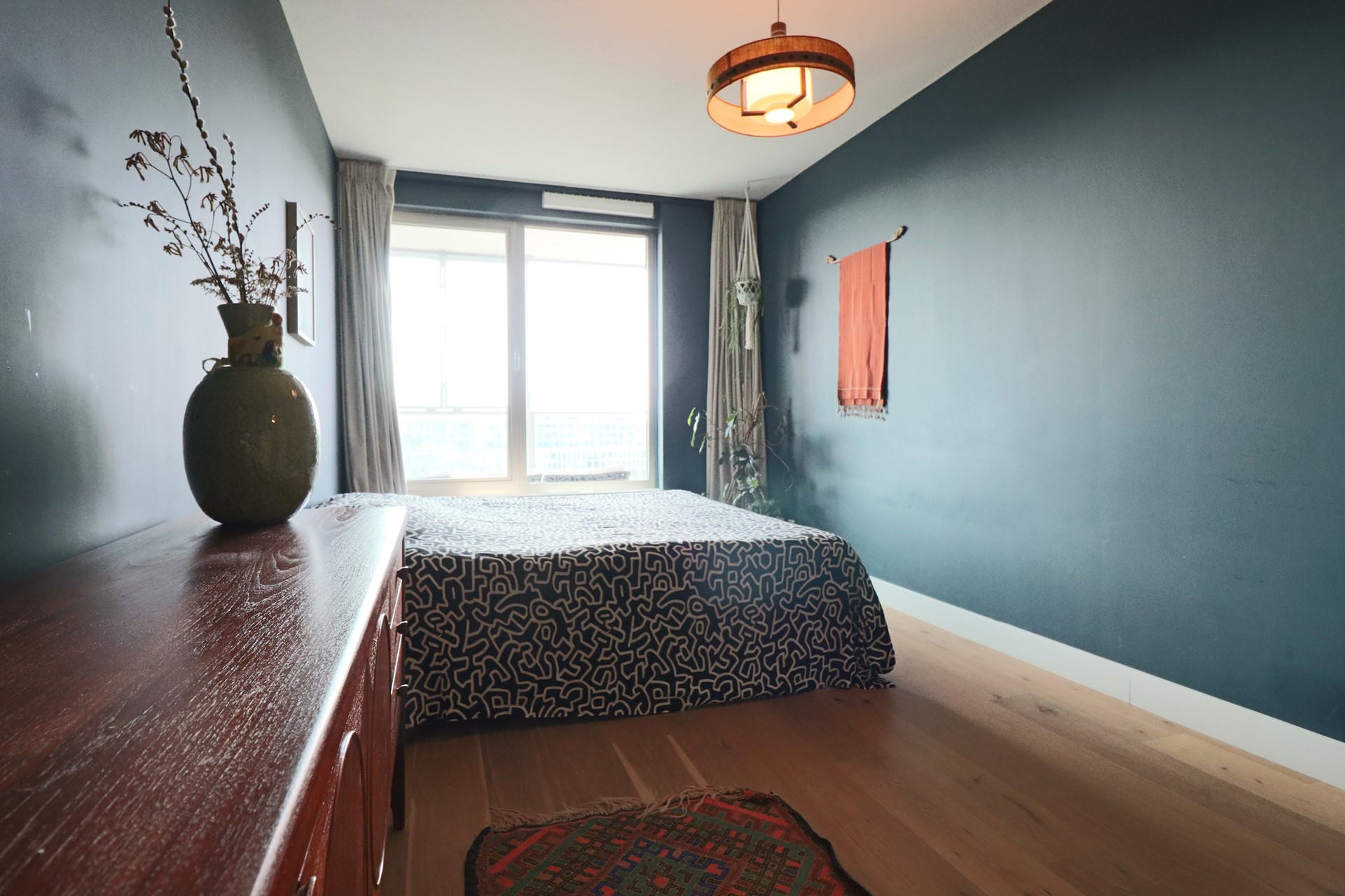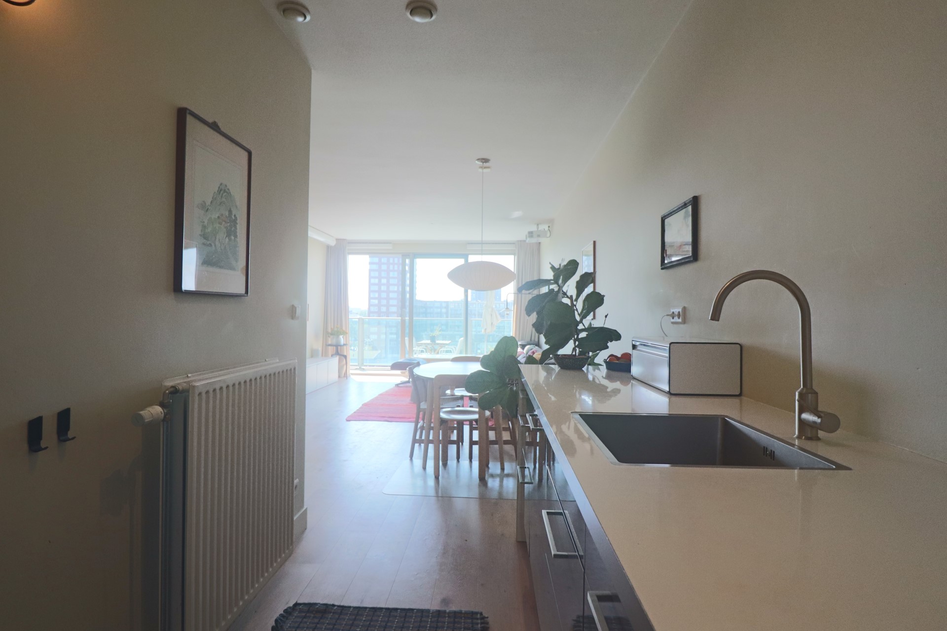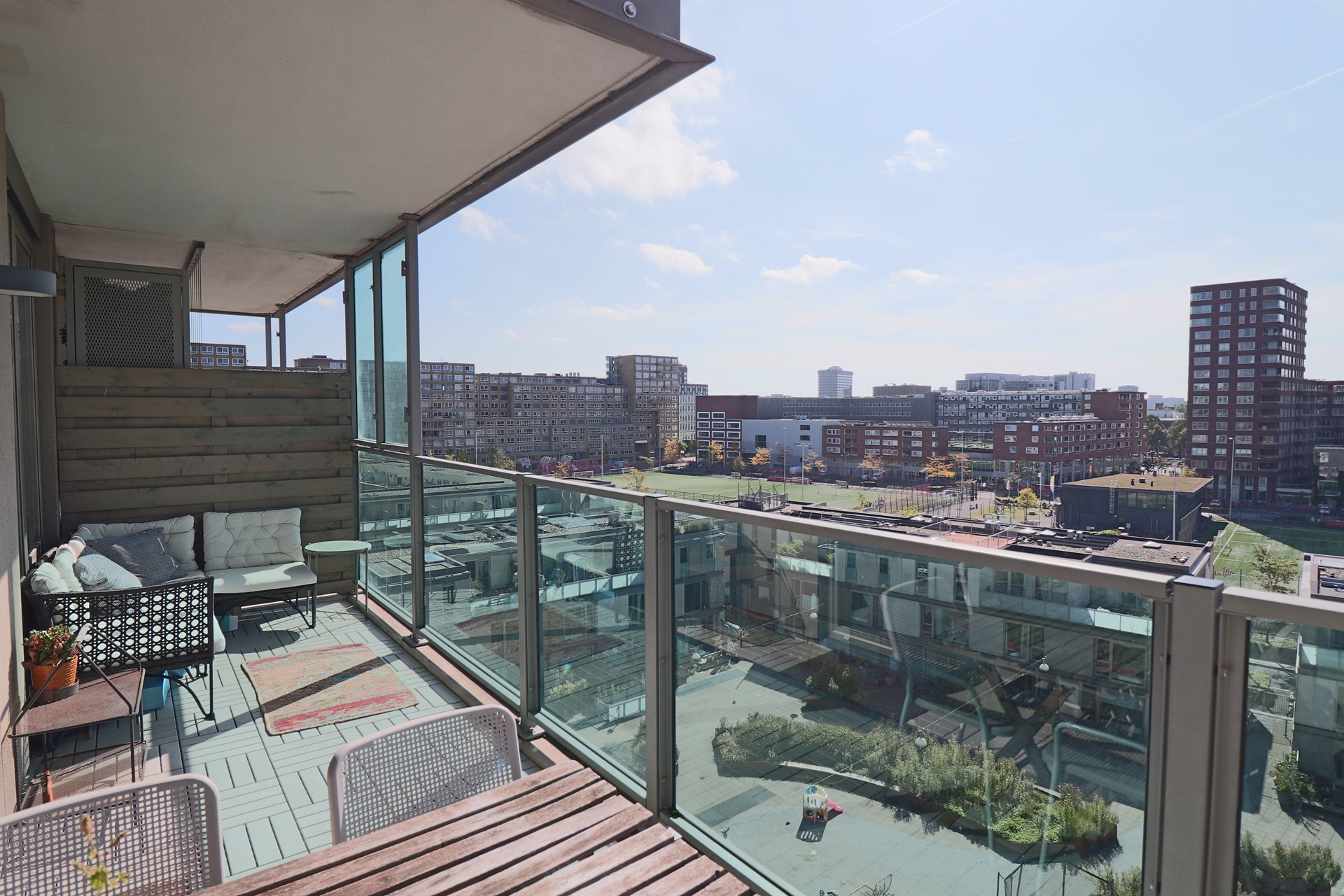 Spacious 2-bedroom apartment with balcony and great views for rent in Amsterdam West. This beautiful property has a nice layout with open kitchen, connected to the livingroom and sunny balcony. The apartment is located on the 7th floor reachable by elevator. There are 2 bedrooms, a separate toilet and bathroom with bathtub, shower and double sink. The apartment is centrally located and close to shops, bars and supermarket. Good connection to the ring A10 and public transport as well.