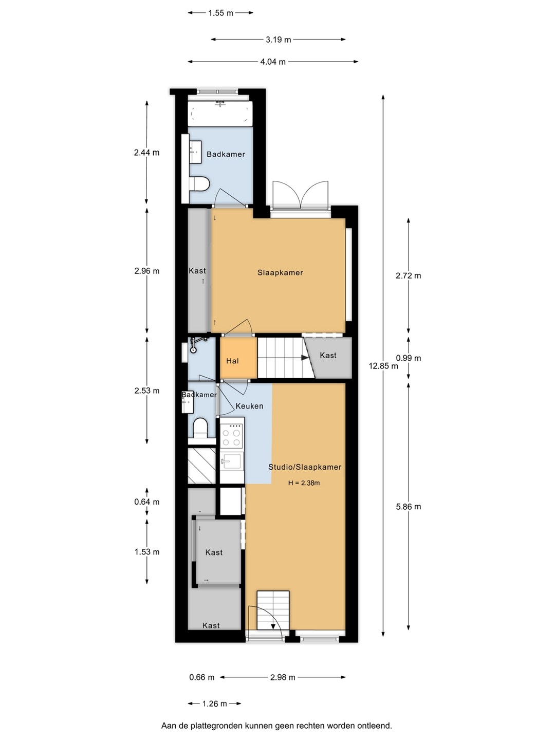 Via een interne trap naar beneden kunt u het souterrain bereiken. Deze is aan de voorzijde omgebouwd tot studio met een aparte ''kitchenette'' en een apart toilet met inloopdouche. De voorzijde van de benedenverdieping is ook middels een aparte entree te bereiken.