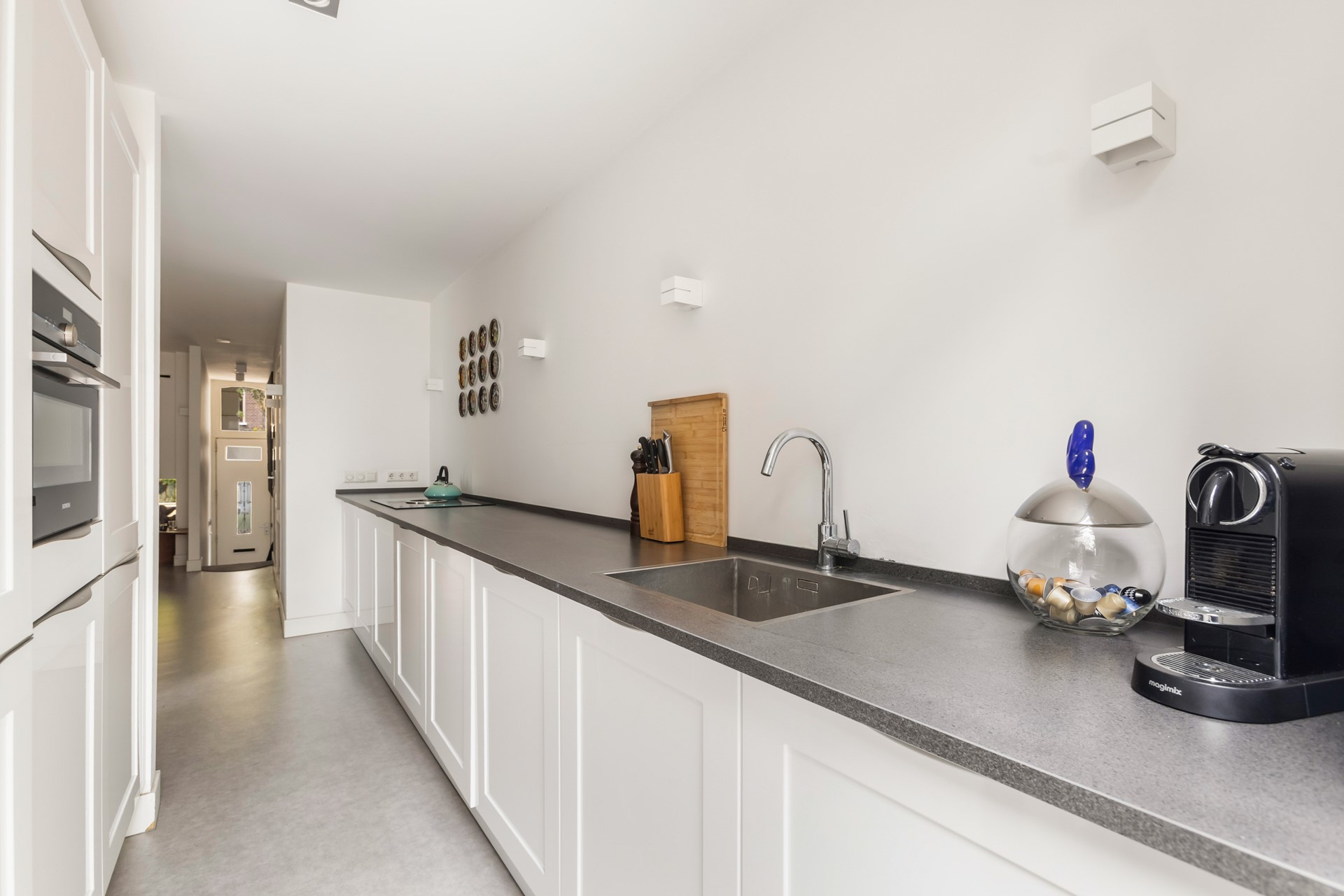 Through a private entrance, you enter the neat hallway, which leads to the living room, a separate toilet, and a separate shower. Once inside, you'll find yourself in the spacious living room with an electric gas fireplace (DRU with remote control). At the front of the house is a room overlooking the street. At the rear of the house is a beautiful kitchen equipped with various built-in appliances and access to the garden.