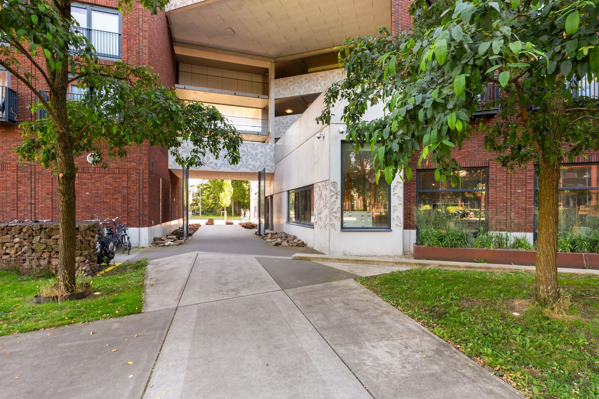 Het luxe nieuwbouwcomplex uit 2014 beschikt over een gemeenschappelijke binnentuin, meerdere dakterrassen, 2 liften en een handige fietsenberging. Het appartement is door de ligging zeer zonnig en licht en heeft een prachtig uitzicht op de binnentuin. Dus NIET aan de kant van het spoor!